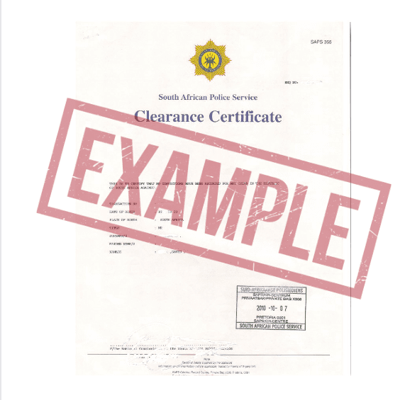 The Police Clearance Certificate is issued by SAPS and the criminal center in Pretoria, based on official documents, to confirm whether the individual listed has any criminal records associated with their name.